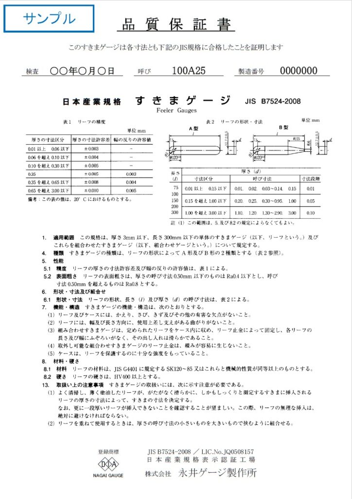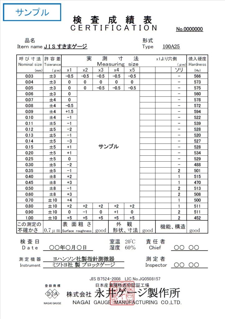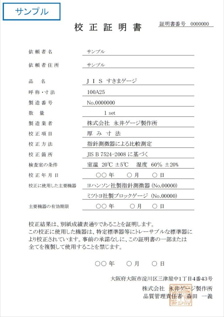 - 校正証明書 書類一式の発行には別途お見積りが必要です。